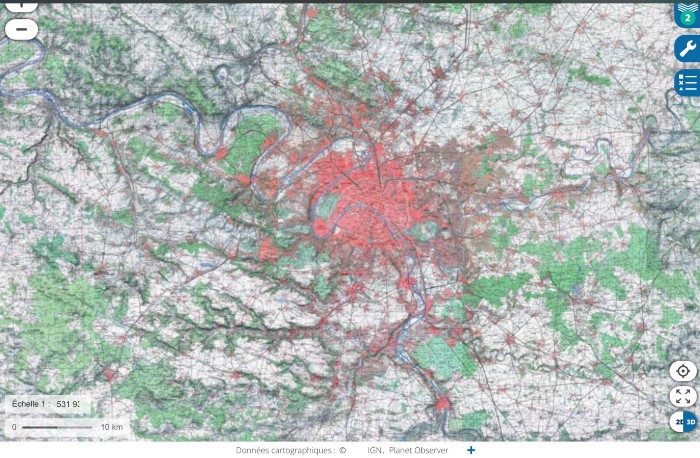 L’étalement urbain, c’est un sujet dont on peut mesurer l’ampleur via ces visuels en région parisienne (2022 VS 1950).