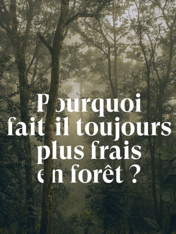 Le compte IG “La vie Partout” qui détaille (entre autres sujets passionnants) le principe de l’îlot de fraîcheur dû à la transpiration des arbres (et pourquoi donc il fait plus frais en forêt);